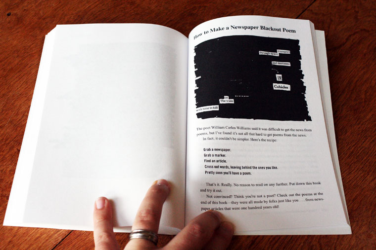 Newspaper Blackout was released in 2010 and “helped fuel a movement” (Oprah Magazine) of blackout poetry across the internet. The companion site, NewspaperBlackout.com, was named “a must-see Tumblr blog” by Time Magazine. The site has published blackout poems from readers all over the world, and is read by over 125,000 daily visitors.