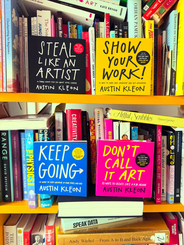 My next book is Don’t Call It Art: 10 Ways to Create Like a Kid Again. It was inspired by my time spent as a studio assistant to my two sons when they were really little and the lessons I learned from them about loving and caring for yourself as a creative person. The book is designed to put you back in touch with that wild and fearless 4-year-old kid that still lives inside you and wants to come out and play. The release date is June 2, but you can pre-order it now wherever you love to buy books.